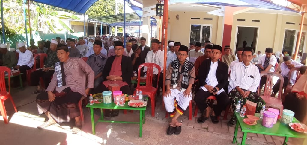 Ketua PC KMP Kab. Subang Ustadz Asep Hadanudin yang juga sebagai Ketua MUI Memberikan sambutan di acara Pengajian Bulanan dan Peringatan Maulid Nabi Saw Tingkat desa