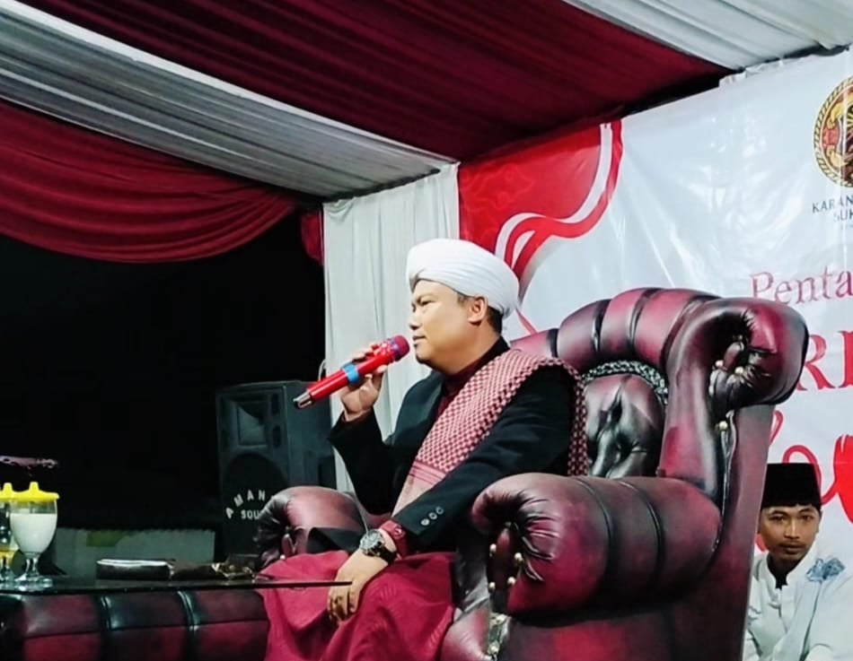 Sekertaris PC KMP Kabupaten Bandung Ustadz Ace Nurzaman mengisi tausiah di acara peringatan kemerdekaan Republik Indonesia ke 80 tahun di Kp. Sukasari RW 09 &14 Desa Mekarpawitan Kecamatan Paseh Majalaya Kabupaten Bandung